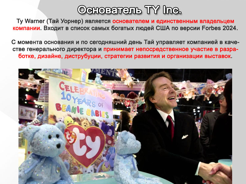 Мы являемся официальным дистрибьютором игрушек торговой марки "TY Inc."